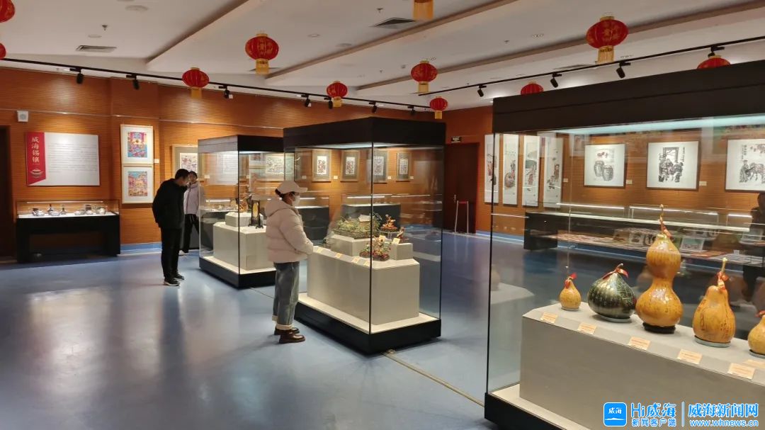除了去圖書館“打卡”,逛博物館也成為市民游客的假期熱門選擇之一。在威海市博物館,“巳巳如意——威海民俗展”吸引了眾多市民游客參觀。步入展廳,傳統年畫、威海剪紙、面塑、漁民畫、錫鑲、老烏貨、銀鎖、非遺葫蘆、布貼畫等十多個品類200余件民俗展品依次排列,引得游客紛紛駐足,欣賞其精美工藝并拍照留念。市民韓女士一家逛得開心:“來這里走一圈,看到了威海的傳統老物件,了解了威海的歷史,不虛此行!”