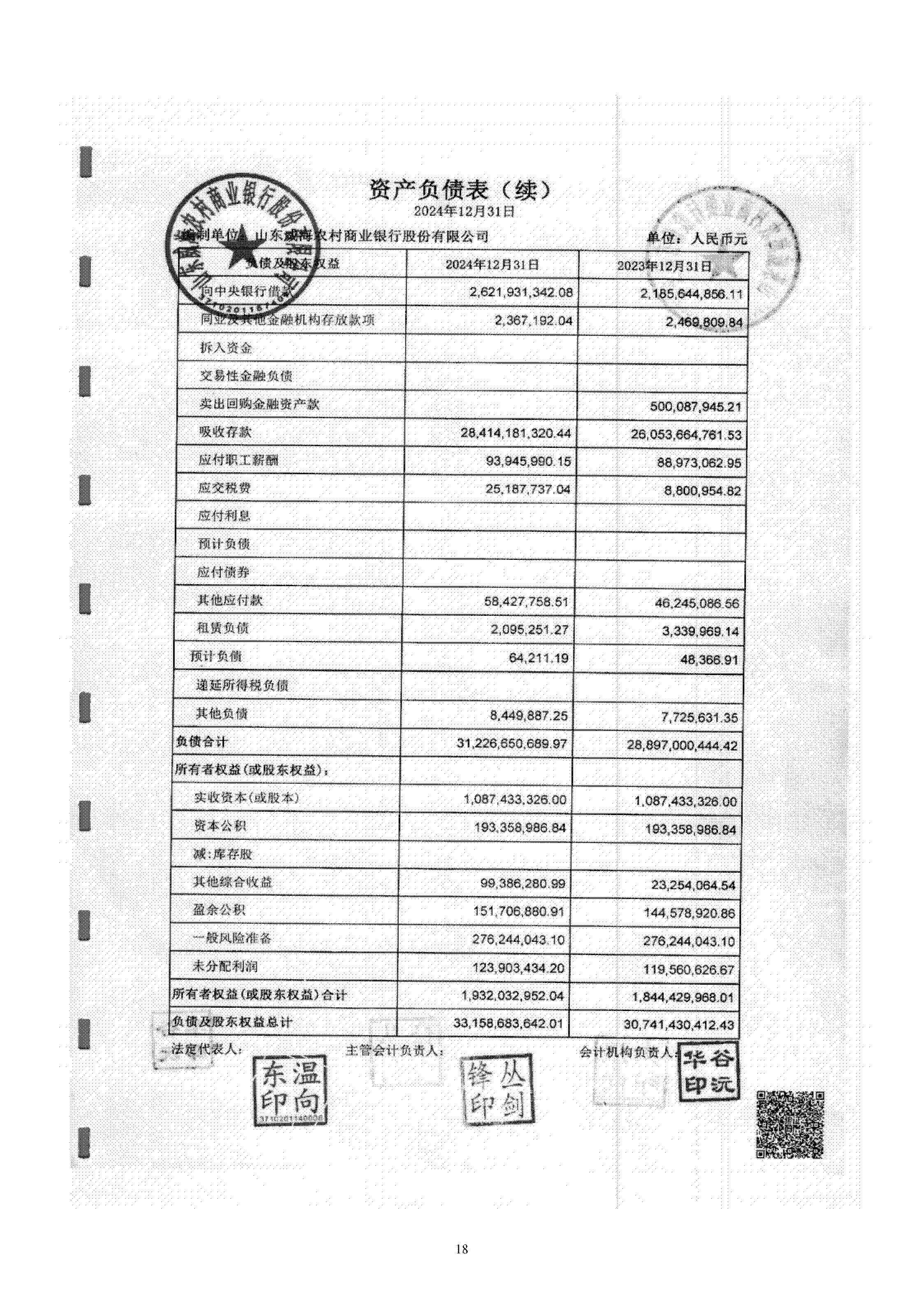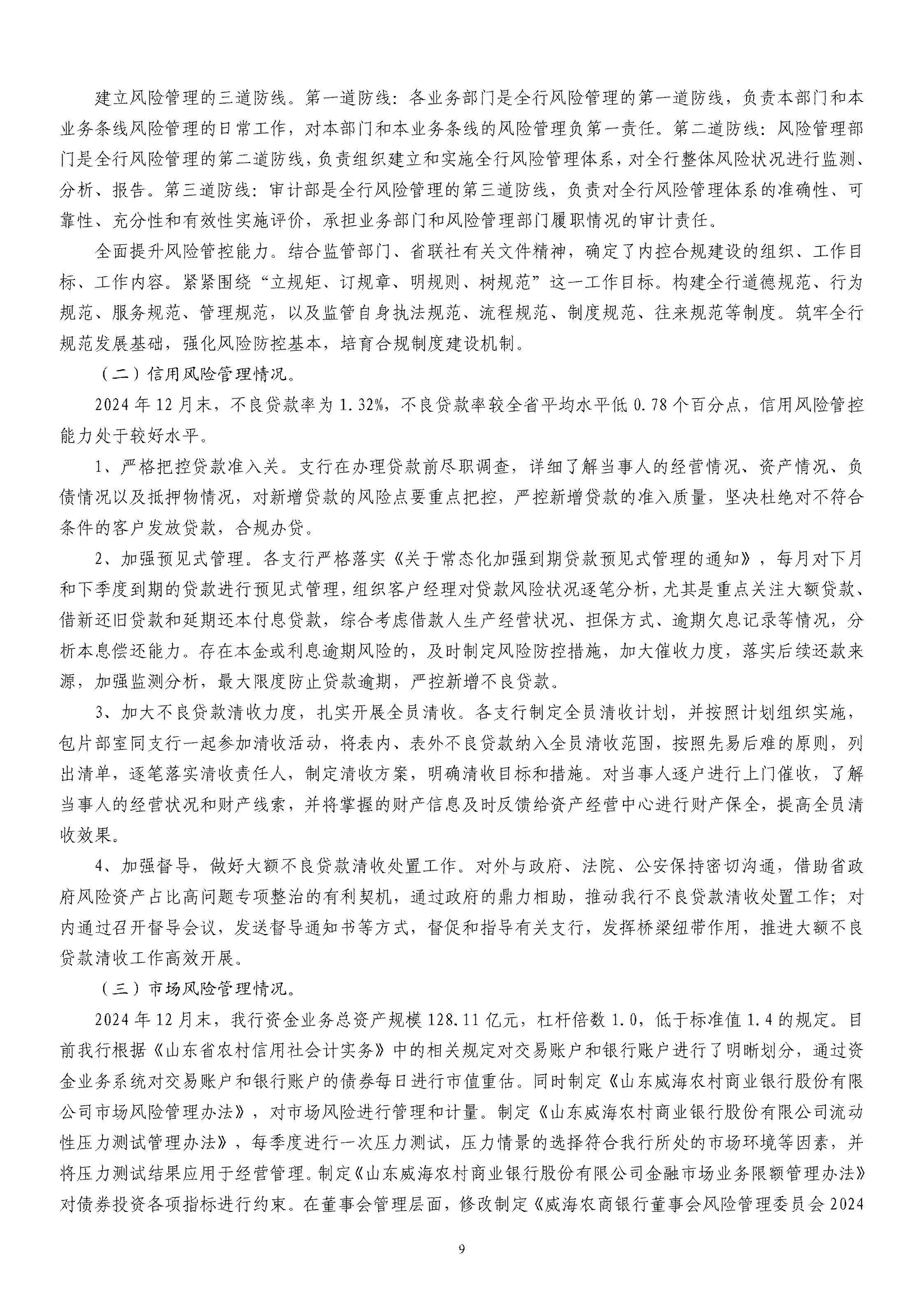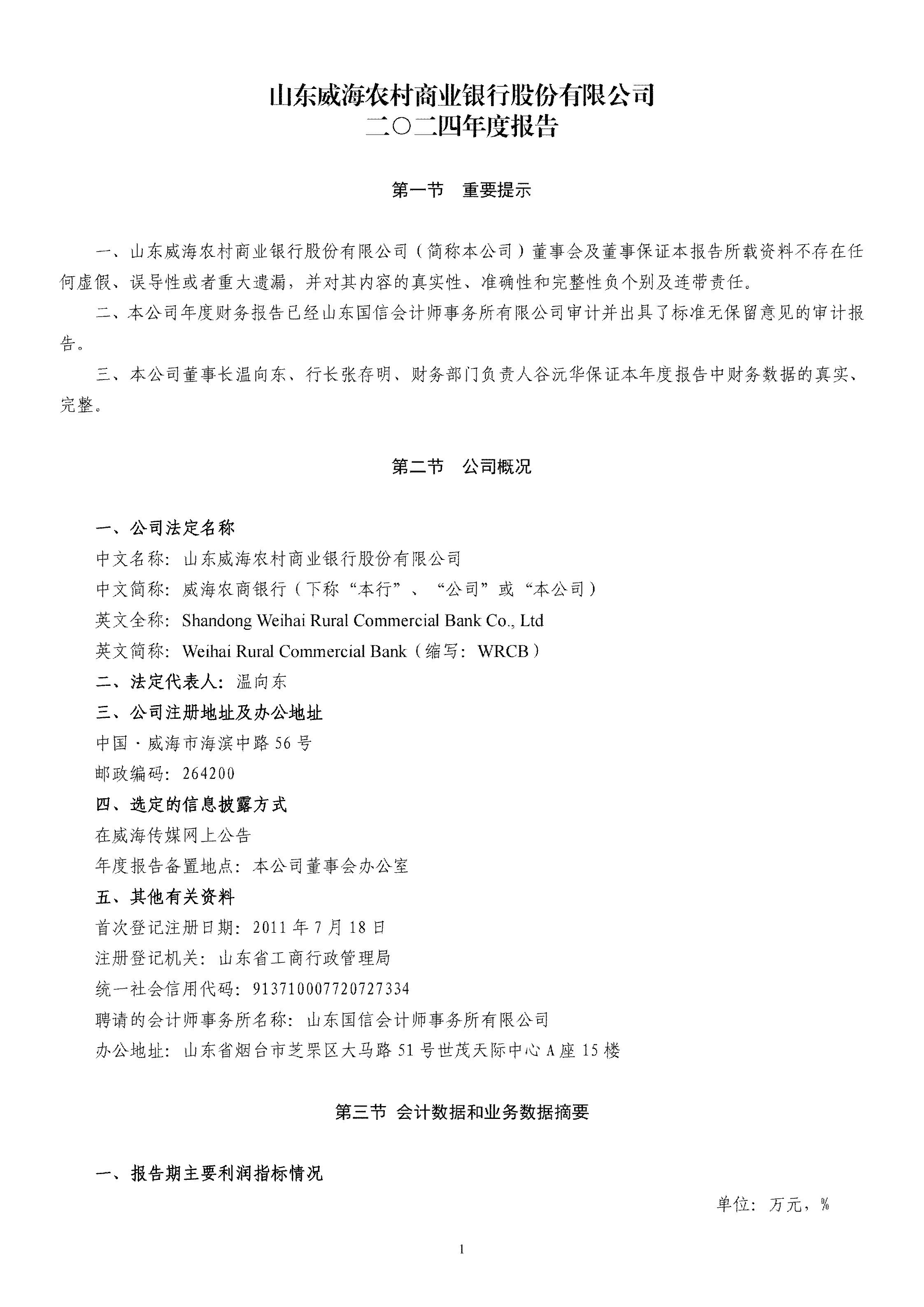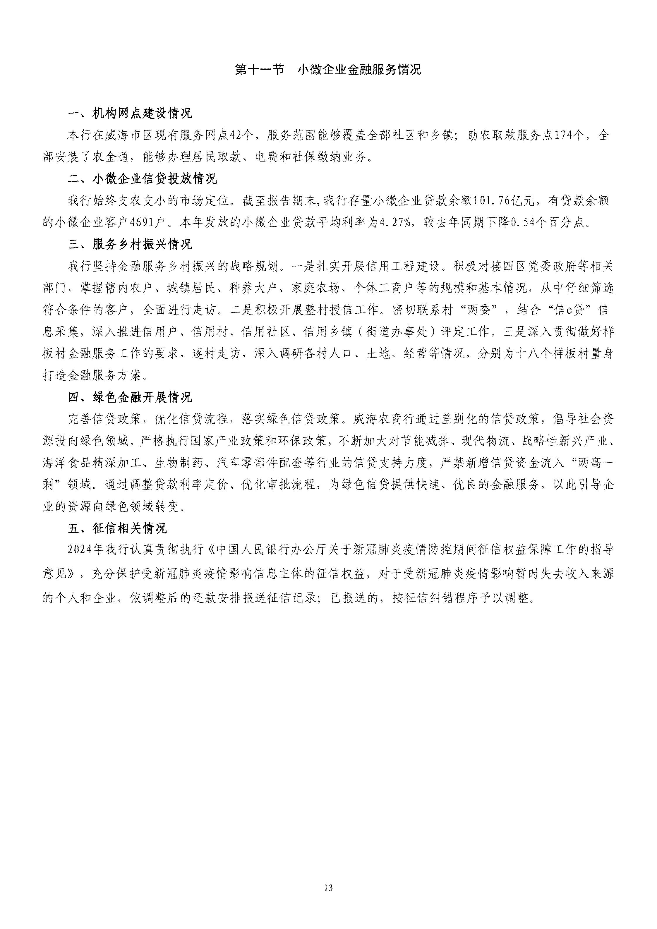 山東威海農村商業銀行股份有限公司二〇二四年度報告