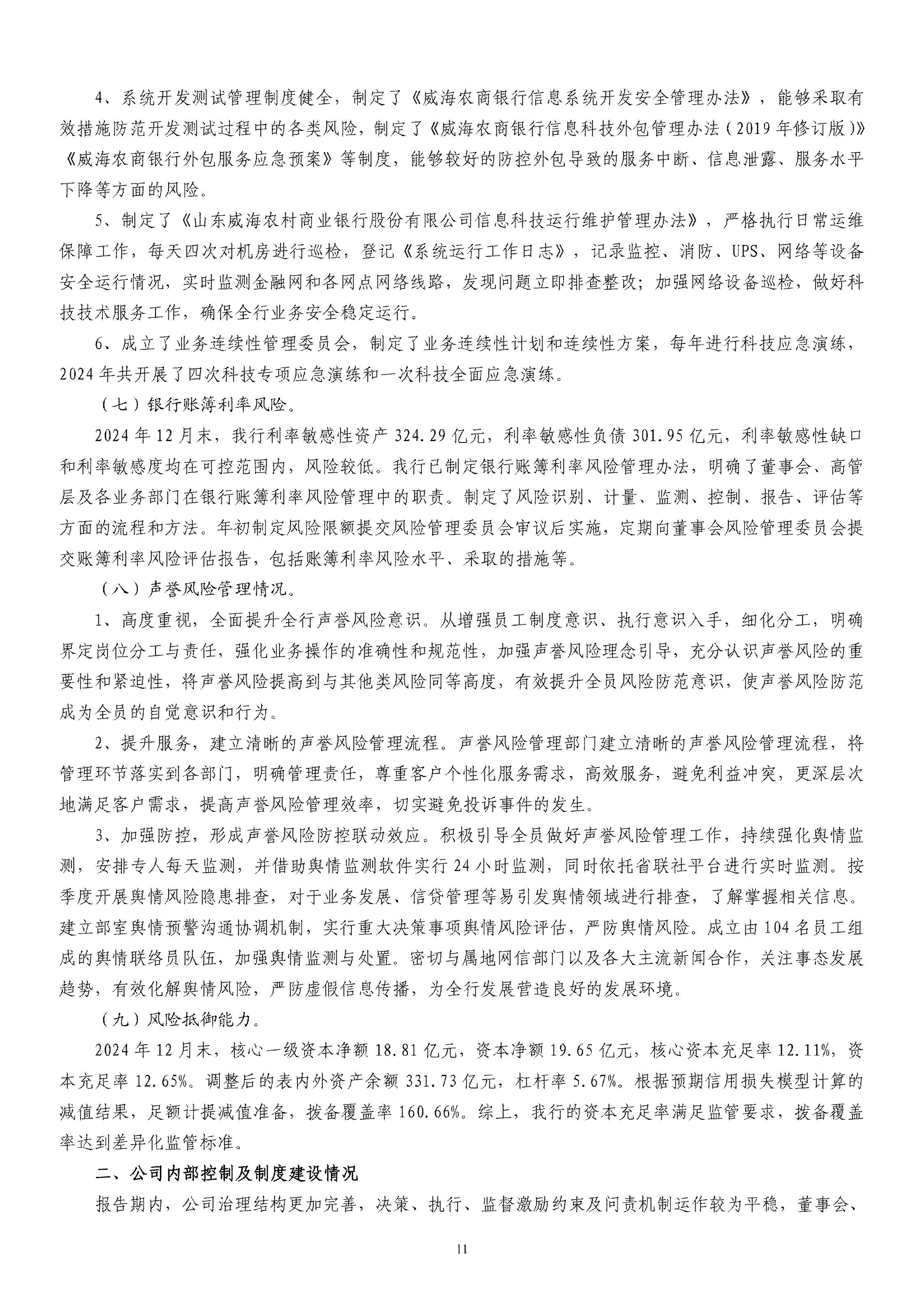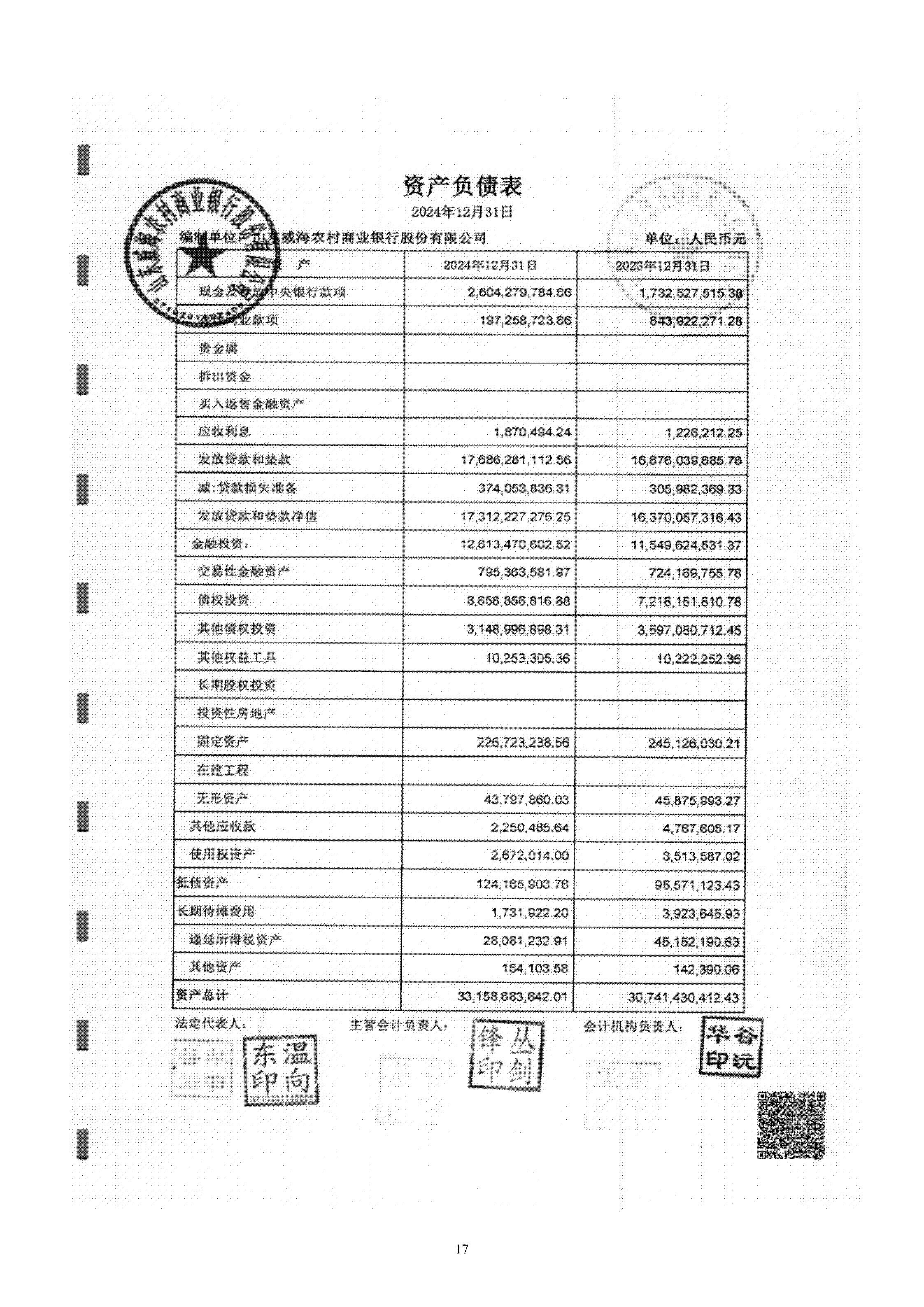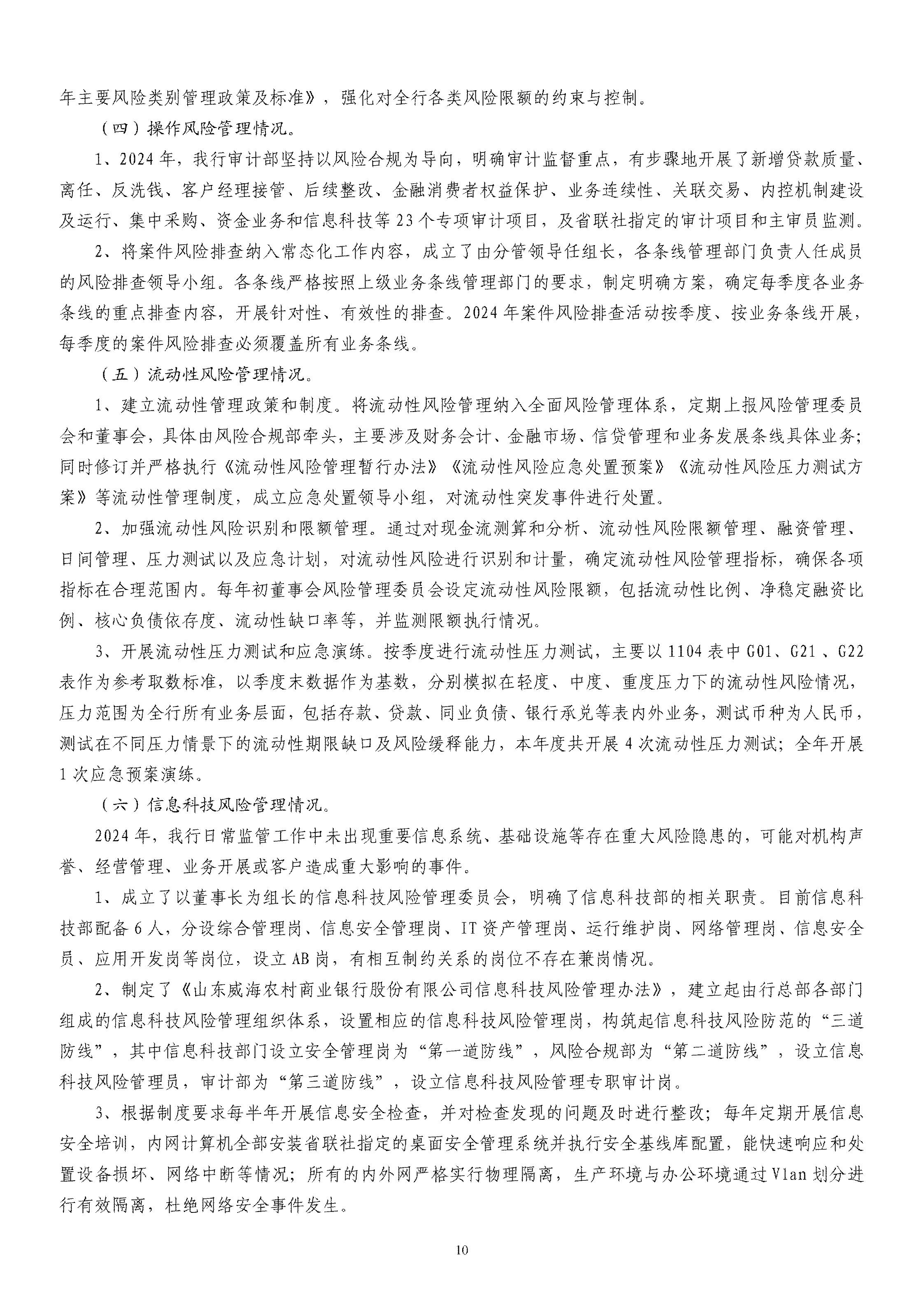 山東威海農村商業銀行股份有限公司二〇二四年度報告