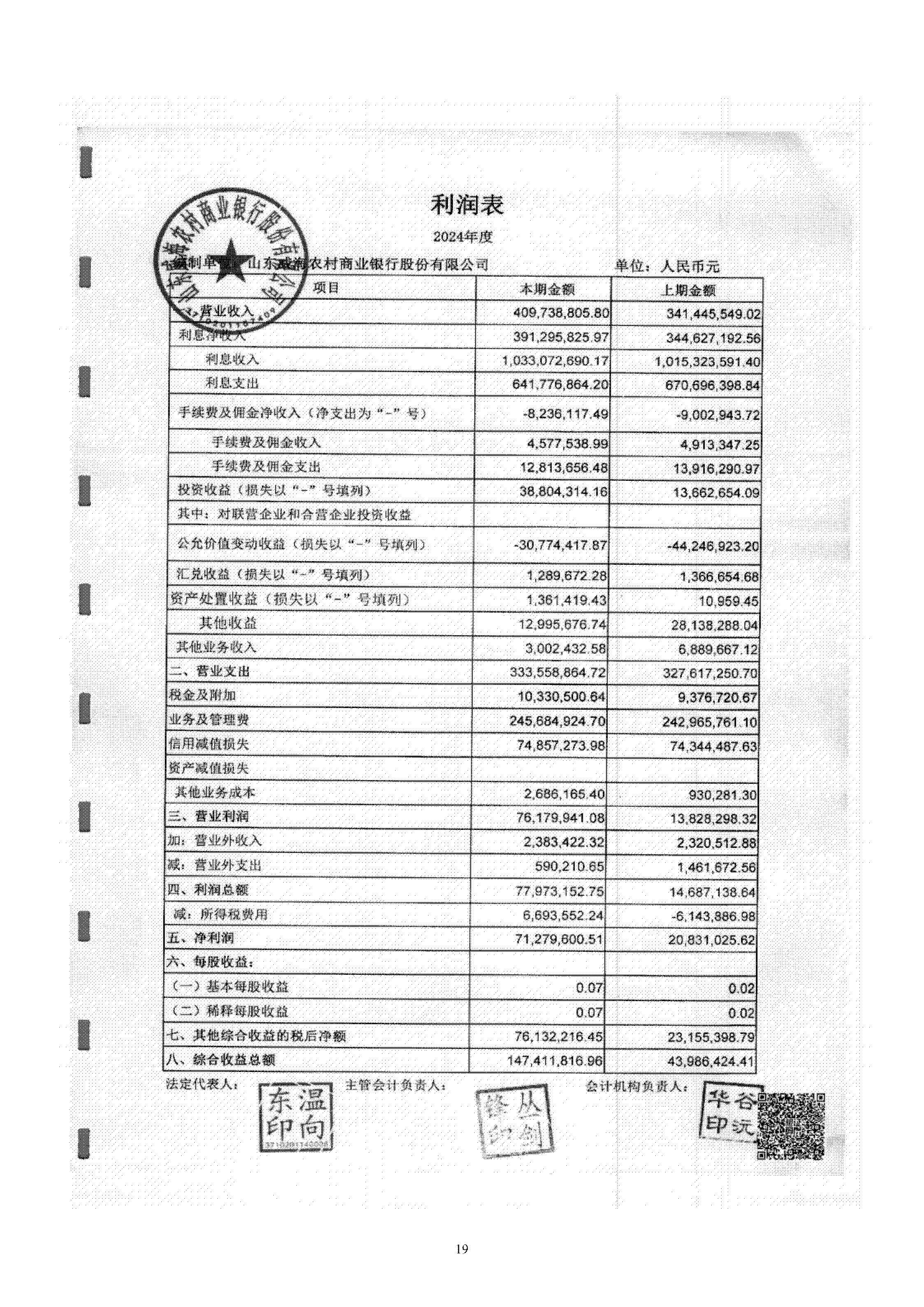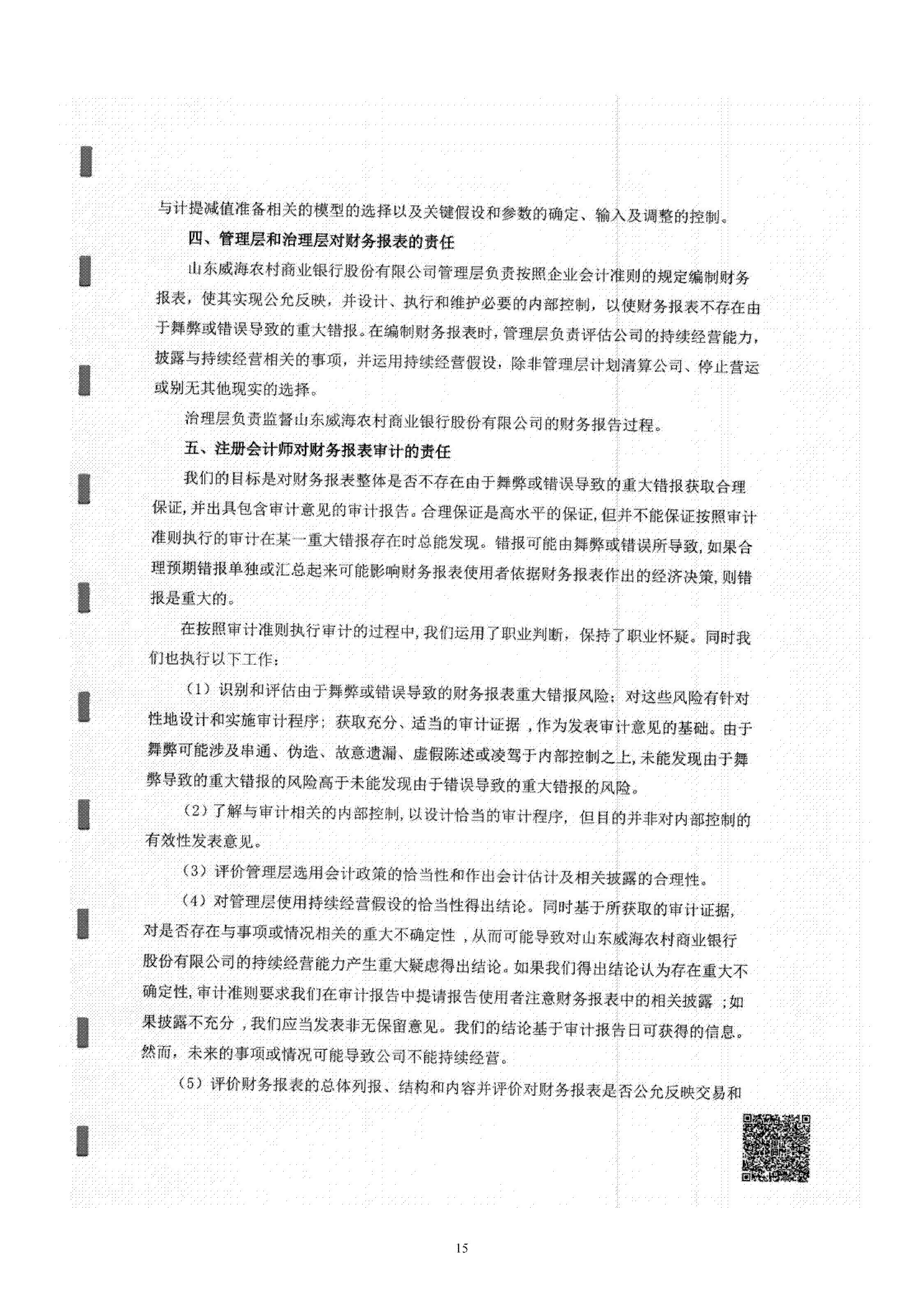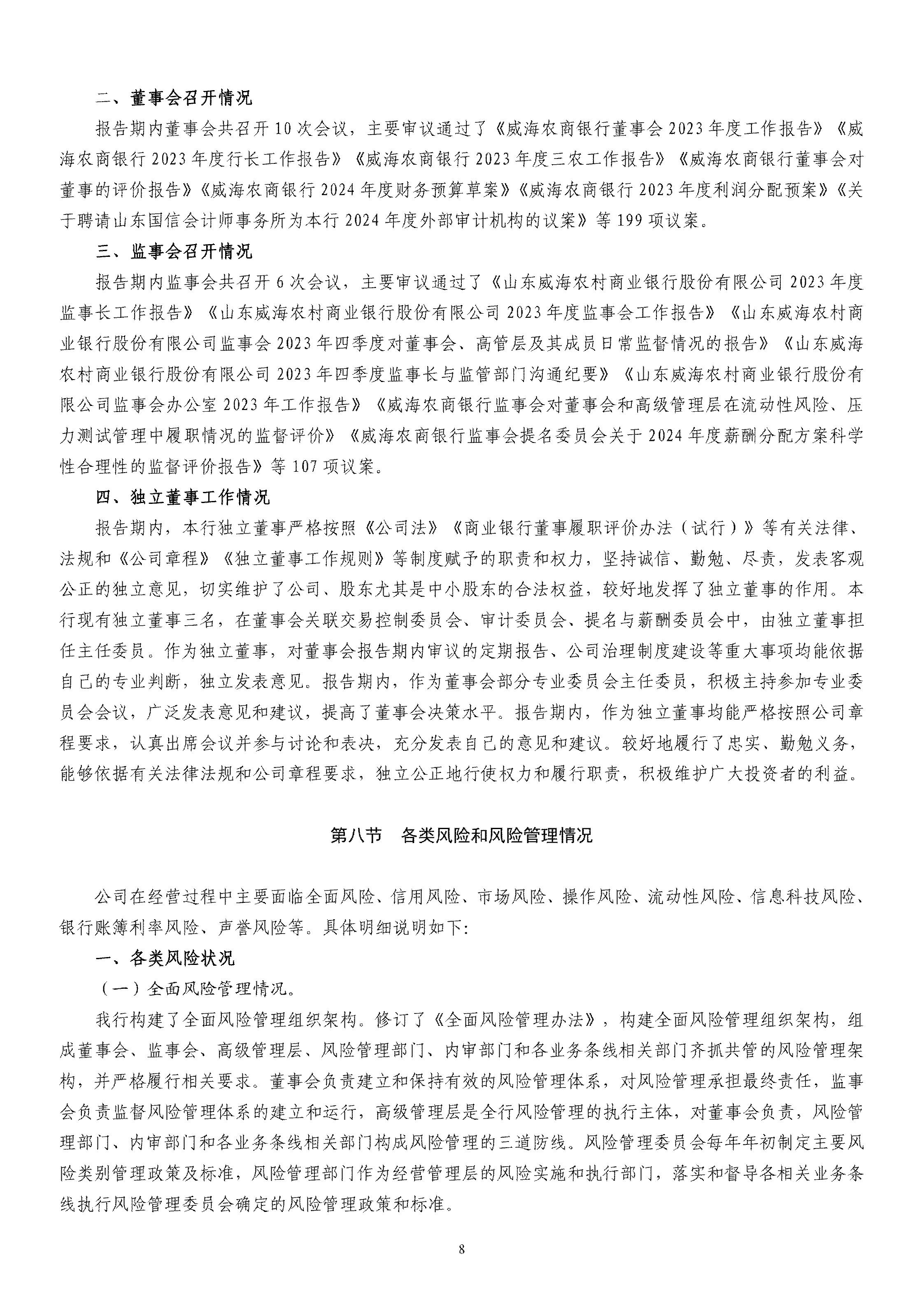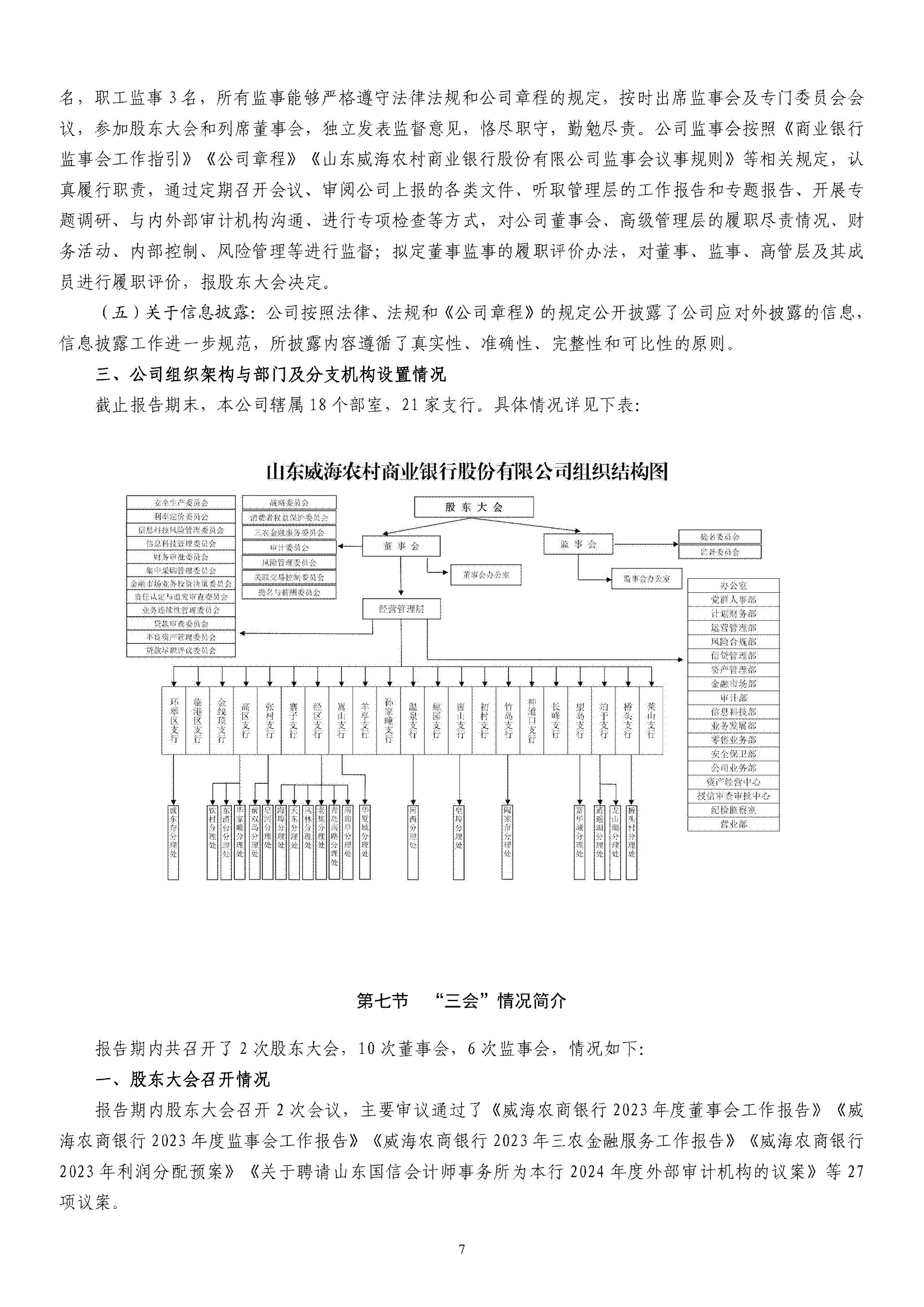 山東威海農村商業銀行股份有限公司二〇二四年度報告