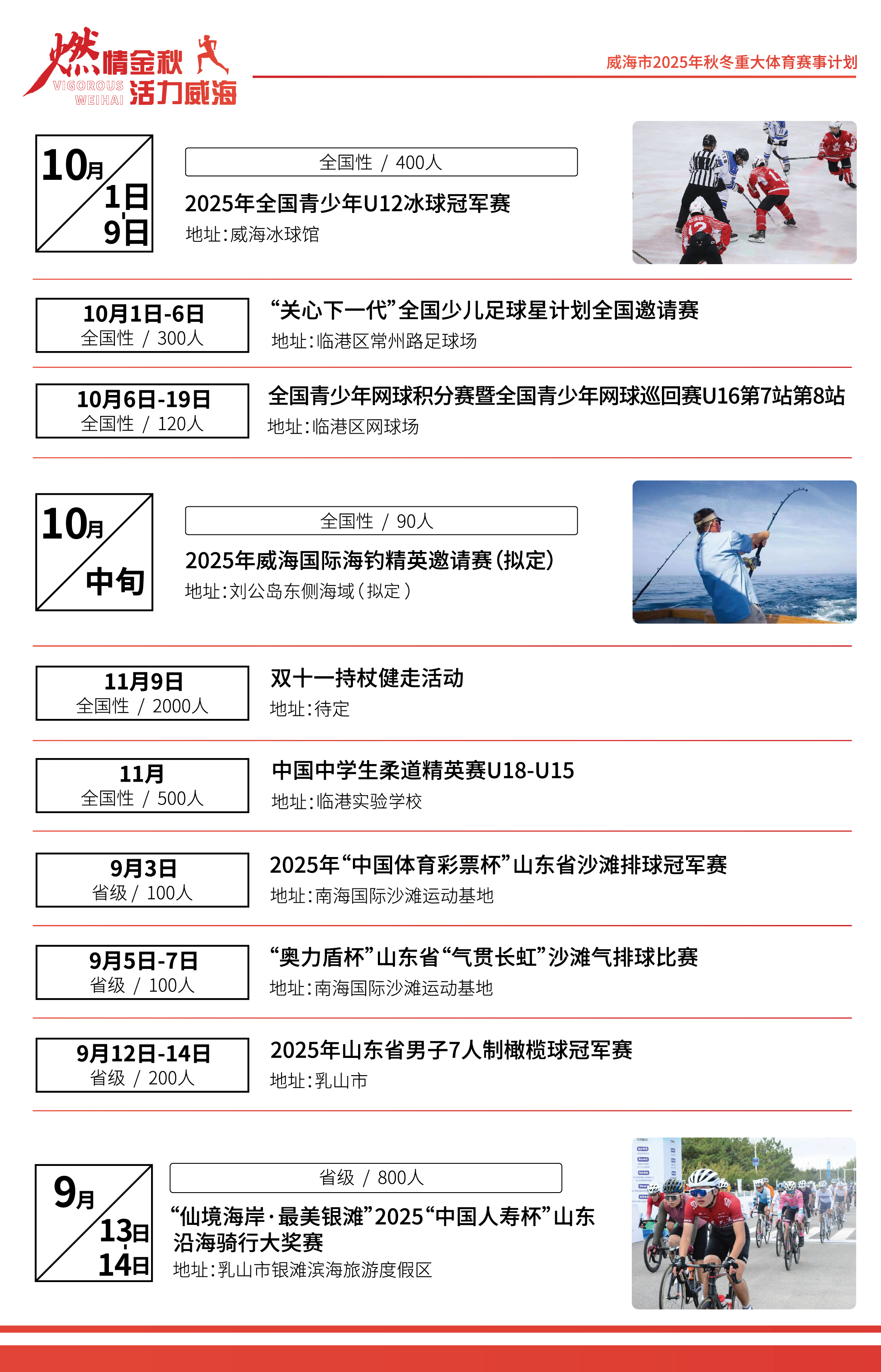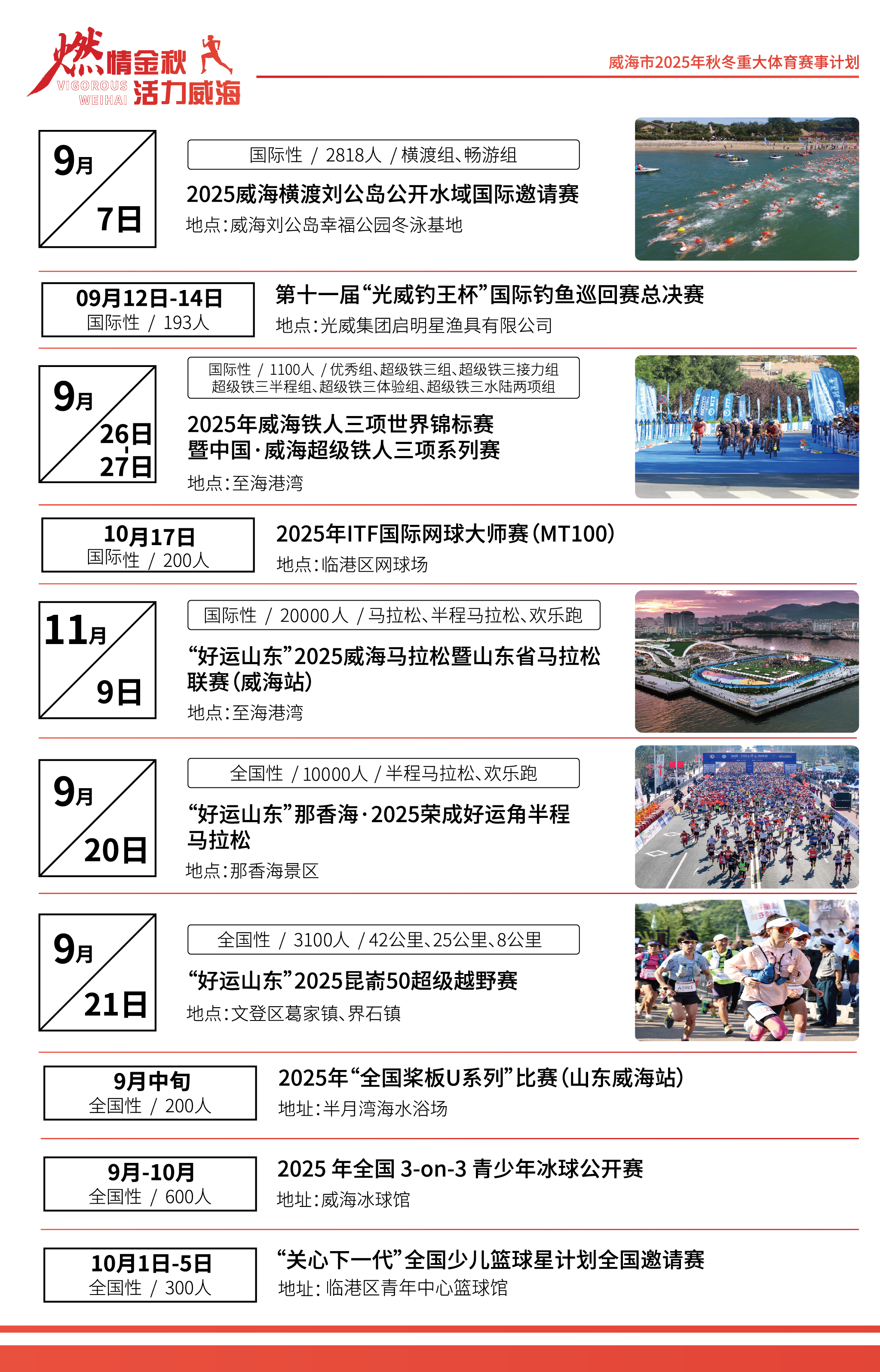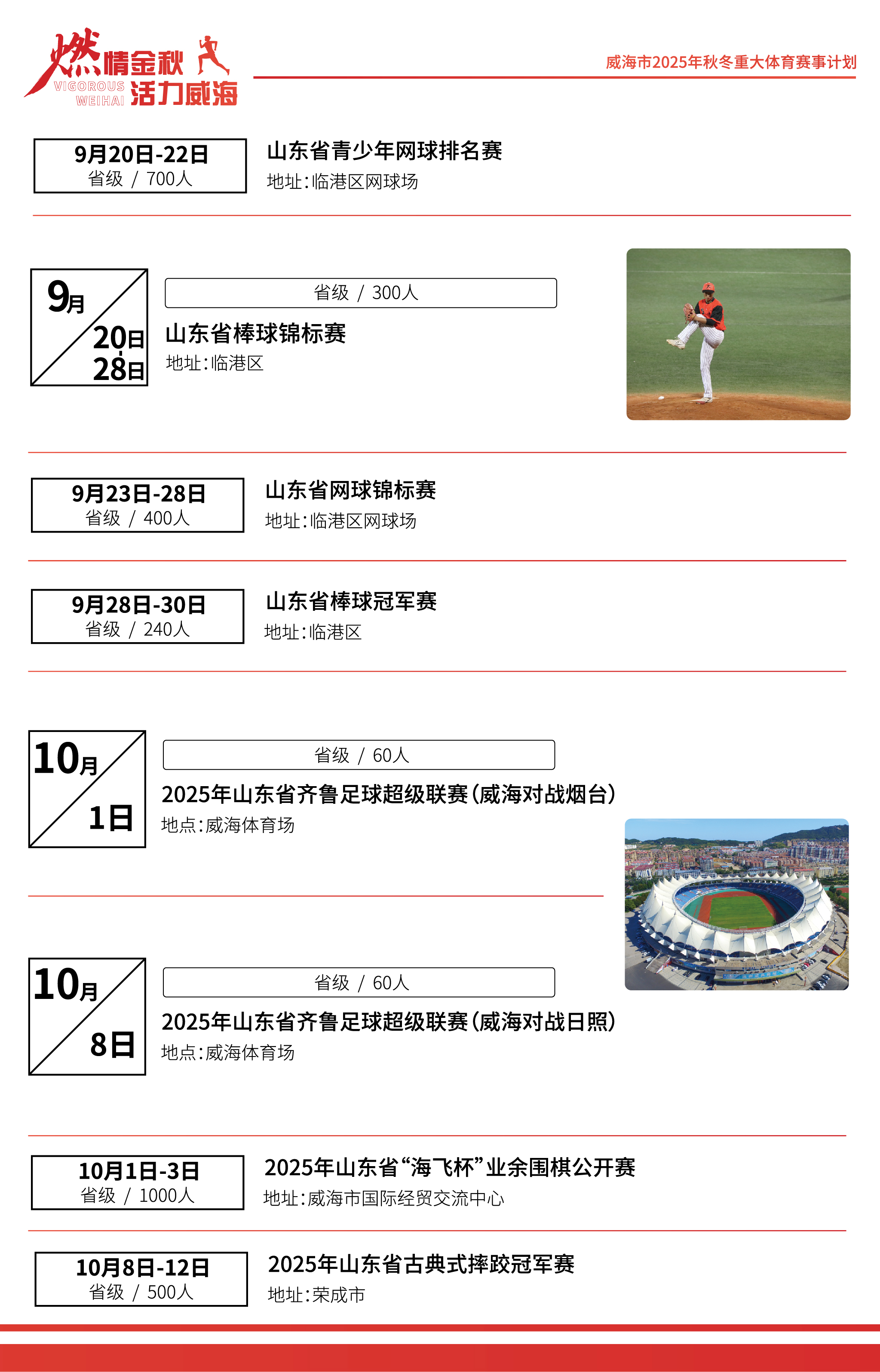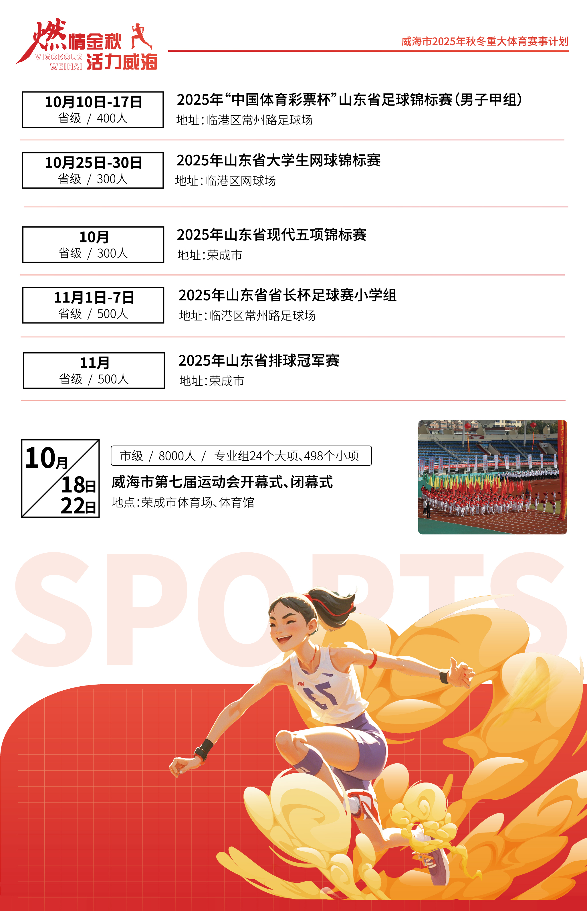 威海市2025年秋冬重大體育賽事計劃