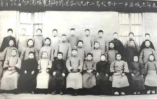 于克(后排左三)讀高等小學時的合影