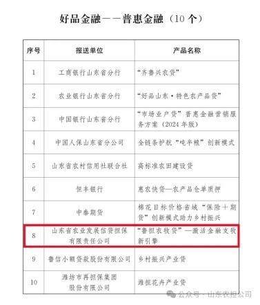 ????????近日,由中共山東省委金融委員會辦公室主辦的山東省2025年度“好品金融”名單正式揭曉,山東農擔公司申報的《“魯擔農牧貸”——激活金融支牧新引擎》入選十大“好品金融—普惠金融”典型案例。
