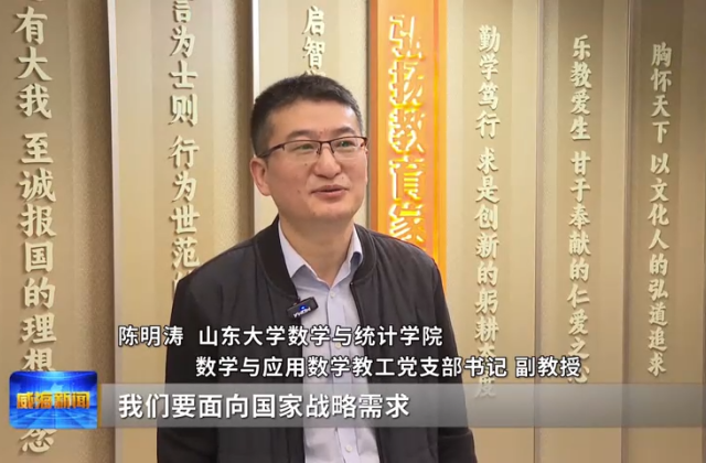 山東大學數學與統計學院數學與應用數學教工黨支部書記、副教授陳明濤說,要面向國家戰略需求,以全會精神為指引,加強創新與技術攻關,落實“立德樹人”根本任務,培養既有扎實數學基礎、又有創新思維和數字素養的復合型人才,推動學術研究服務國家發展。