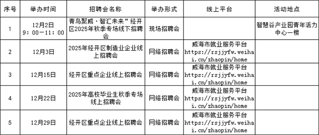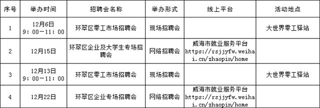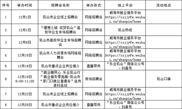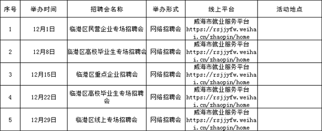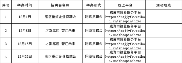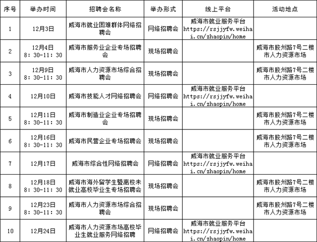 溫馨提示:本公告內容為計劃安排,請以各區市具體活動公告等信息為準,建議招聘單位和求職者提前電話咨詢或留意相關公眾號或網站公告。(來源:Hi威海客戶端)