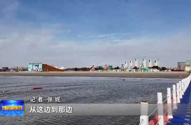 ????????記者張妮:從這邊到那邊,這一片全部都是金鼎·風從海上來驛站,我覺得這兒真的把“海韻”拿捏得死死的!大風車、海上秋千,還有我現在所在的漂浮棧道等項目,不管是散步賞景,還是拍照打卡,都是非常出片。站在這里遠眺,大海是格外得遼闊,所有煩惱都能被海風帶走。
