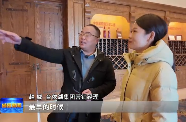 ????????臺依湖集團營銷經理趙威:這個地方也可以稱為乳山的記憶,最早的時候,在乳山的下初鎮是有咱自己的釀酒公司。金釀白蘭地、雷司令,其實這些老牌子的葡萄酒都是咱們乳山這個地方生產出來的。現在12款葡萄酒已分別斬獲國內外的107項大獎了。除了有這樣的一個悠久歷史之外,咱們的酒窖也是非常精彩的。