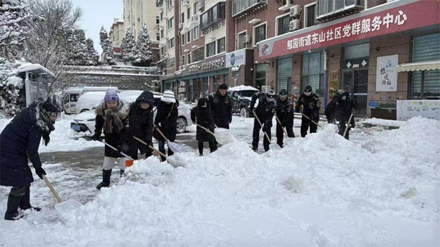 基層社區的暖心清雪行動同步上演。鯨園街道提前為各社區配齊鐵鍬、掃帚、推雪板等手動清雪工具,確保機械作業與人工清掃無縫銜接;西苑街道匯安社區的清雪“總動員”一呼百應;竹島街道統籌調配人工與機械力量,聯動多方力量協同作戰,全面開展高效清雪除冰行動,用速度與溫度守護轄區平安。