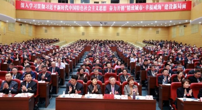 ????????中共威海市委書記閆劍波,市人大常委會主任賈瑞靄到會祝賀并在主席臺就座。