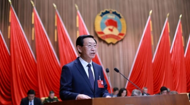 ????????林強代表政協第十四屆威海市委員會常務委員會,作常委會工作報告。