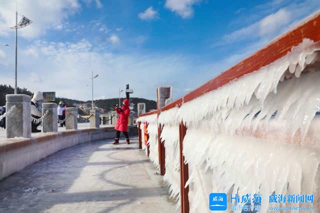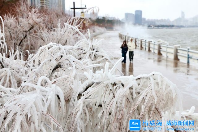 ????????威海新聞網訊 1月19日,受大風和強降溫影響,葡萄灘海水浴場、威海公園等沿海區域的護欄及樹木上,凝結出大面積積冰。海浪一次次拍打,在護欄、樹木上堆疊出串串晶瑩剔透的冰凌,部分沿海的冰凌景觀綿延數公里,蔚為壯觀。這一奇景驚艷了眾多游客與網友,大家紛紛感嘆,威海的冬日冰凌宛如現實版“冰河世紀”。