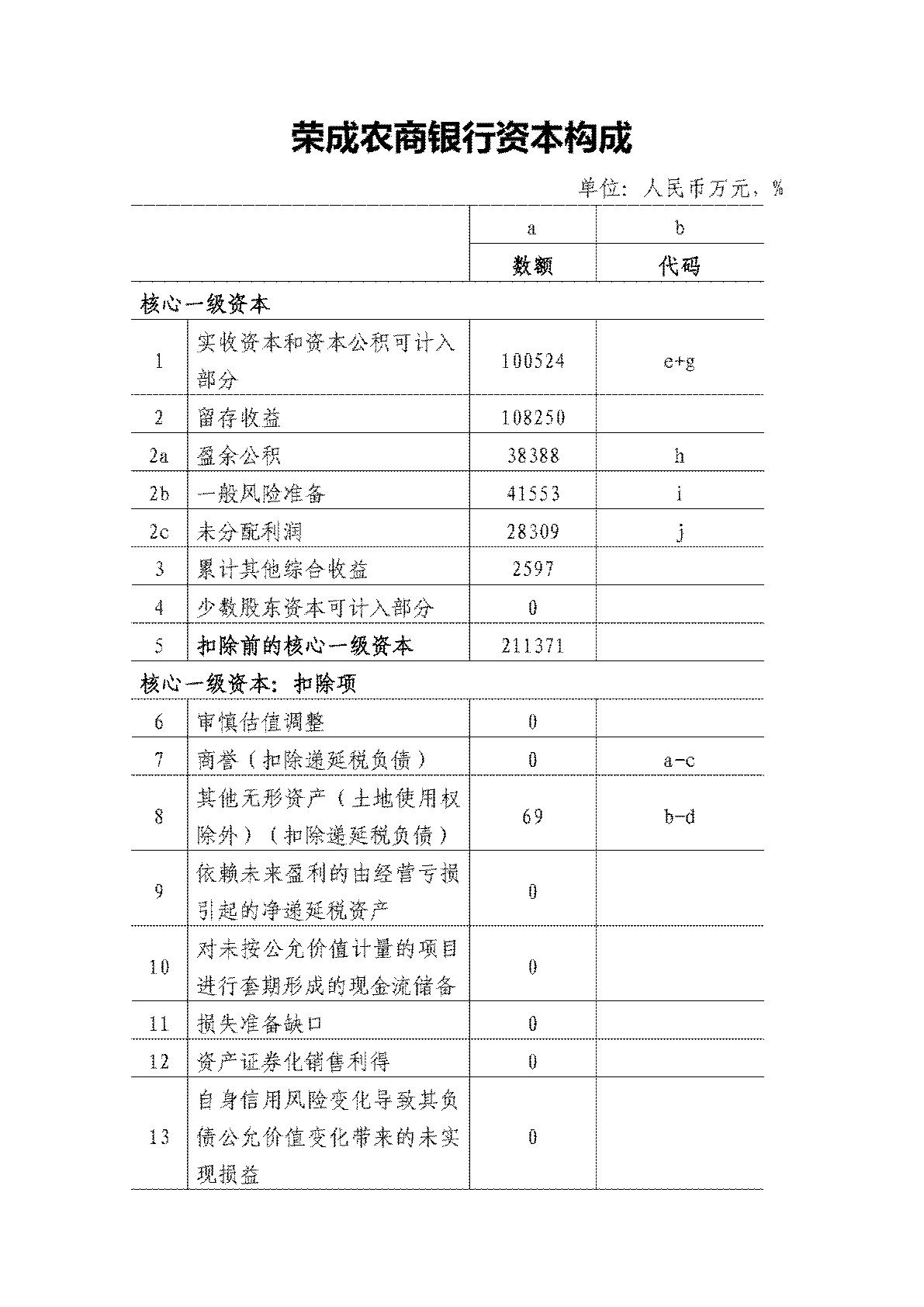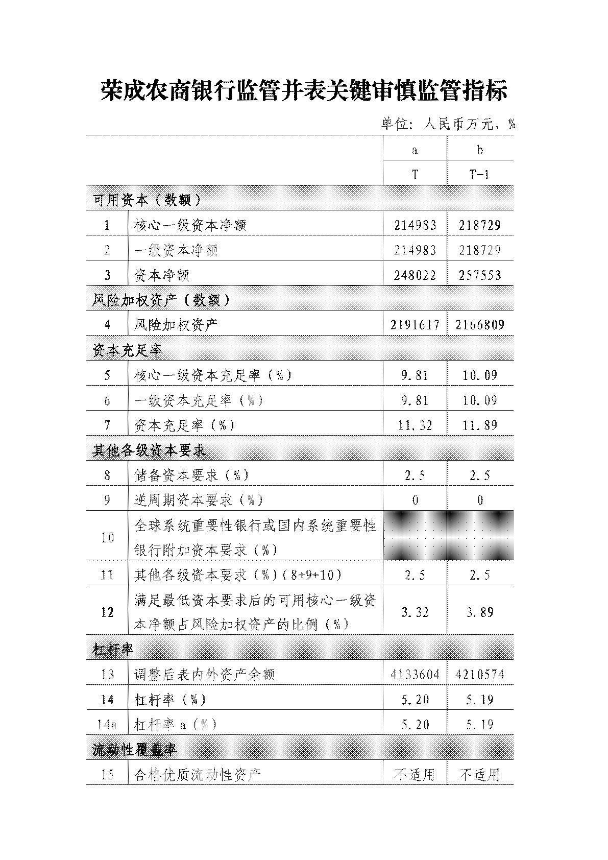 榮 成 農 商 銀 行 監 管 并 表 關 鍵 審 慎 監 管 指 標 及 資 本 構 成