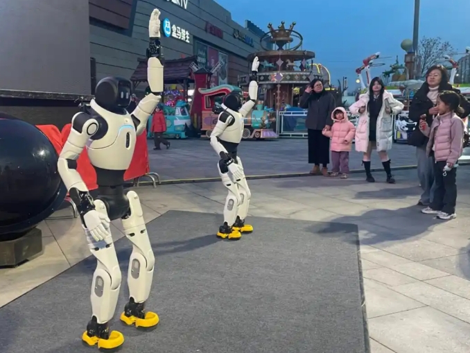 ????????山東一家商場前的機器人表演。(受訪者供圖)不止忙碌在文旅、消費一線,在山東,更多機器人在新春之際走下生產線,走進工業生產領域。