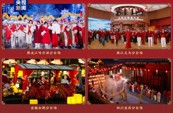 ????????晚會(huì)在《元宵正好》的喜慶旋律中熱鬧開(kāi)場(chǎng),《千燈萬(wàn)戶》彩扇紛飛、花傘揮舞,創(chuàng)編戲歌《春江花好月圓夜》與歌曲《好彩頭》等送出和和美美、所愿皆圓的美好祝福。徐夢(mèng)桃、王心迪、隋文靜、范可新四位冬奧健兒驚喜亮相,與現(xiàn)場(chǎng)觀眾一起鬧元宵、送祝福。在哈爾濱分會(huì)場(chǎng),冰雪大世界的熱鬧與元宵的溫情撞個(gè)滿懷;義烏分會(huì)場(chǎng)里“世界超市”的澎湃活力撲面而來(lái);合肥分會(huì)場(chǎng)盡顯元宵煙火與江淮文化魅力;宜賓分會(huì)場(chǎng)傳遞出團(tuán)圓歡聚的溫暖喜悅。