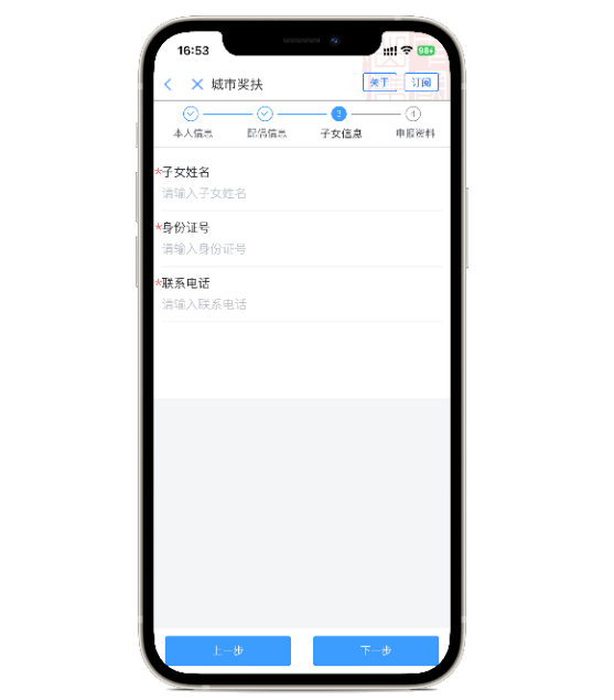 6.填寫“子女信息”。按要求如實(shí)填寫子女基本信息,填寫完成點(diǎn)擊“下一步”。