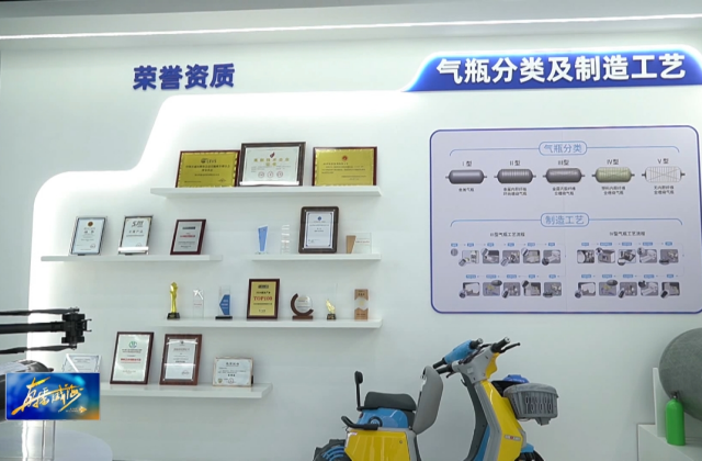 科泰克(山東)特種裝備科技有限公司副總經理葉云姣介紹,這是一個12L的無人機用瓶,工作壓力是35兆帕,容積是12升。配上后方的氫動力無人機,續航時間3小時以上,與鋰電池相比,續航能力是鋰電池的5倍。在相同環境下,受環境因素影響較小,可以在40度到零下30度正常起飛和工作,基本上非嚴寒地區是不受環境因素影響。
