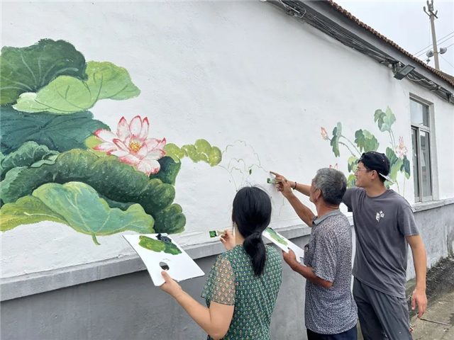 初村鎮:百年荷花搬上墻 共繪精美畫卷