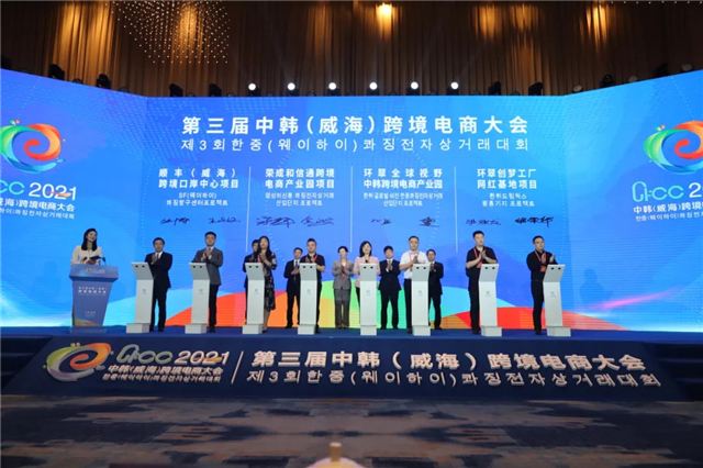 竹島街道中韓跨境電商產(chǎn)業(yè)園項(xiàng)目參加第三屆中韓(威海)跨境電商大會(huì)簽約儀式