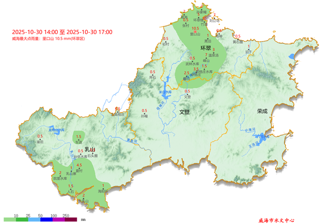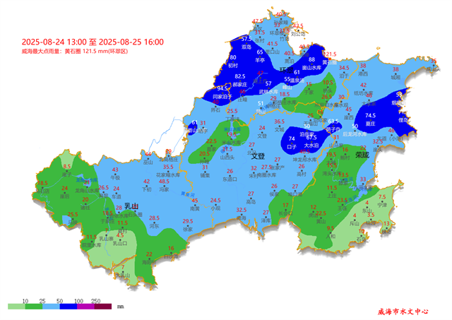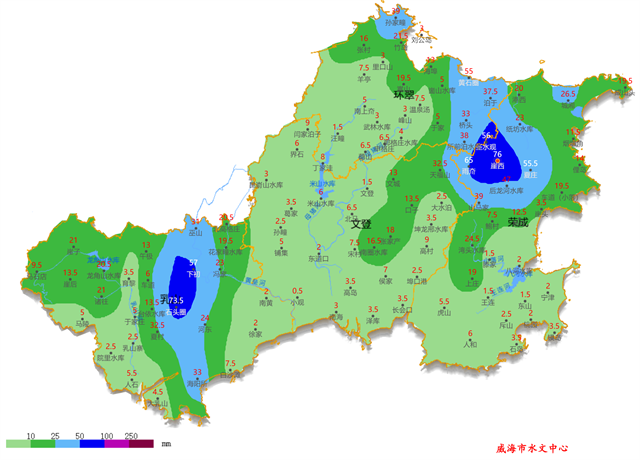 最新雨情:7月31日14時至8月1日15時,威海平均降水量14.3毫米