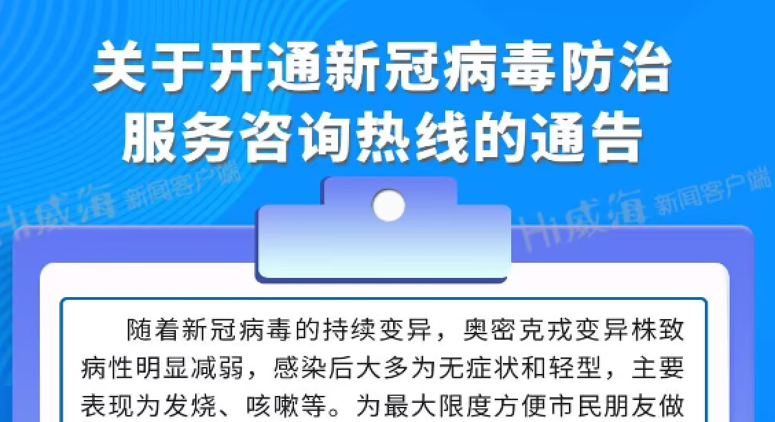 威海開通新冠病毒防治服務(wù)咨詢熱線