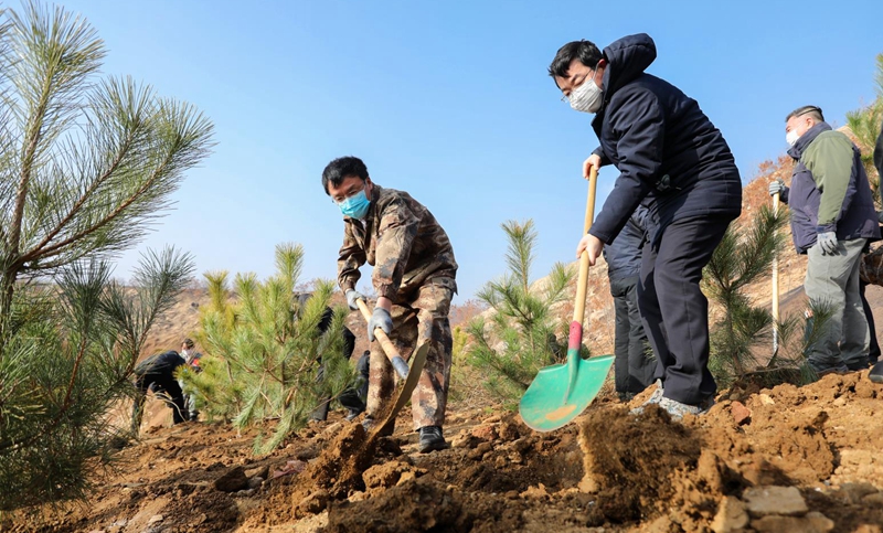 市領導參加義務植樹活動,王魯明現場督導植樹造林、村莊綠化和山體修復工作